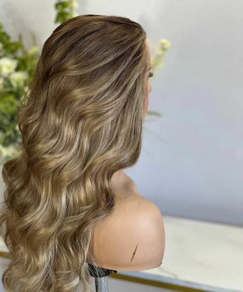 Cabelo Brasileiro - 60 centímetros de comprimento - densidade 180% - loiro champanhe com raiz esfumada.